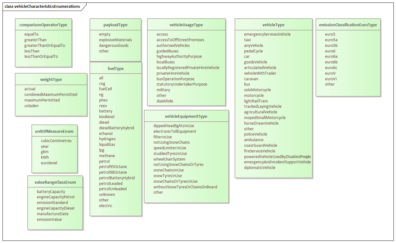 Figure 90 UML class diagram - Enumeration Classes in the vehicleCharacteristics sub-model¶